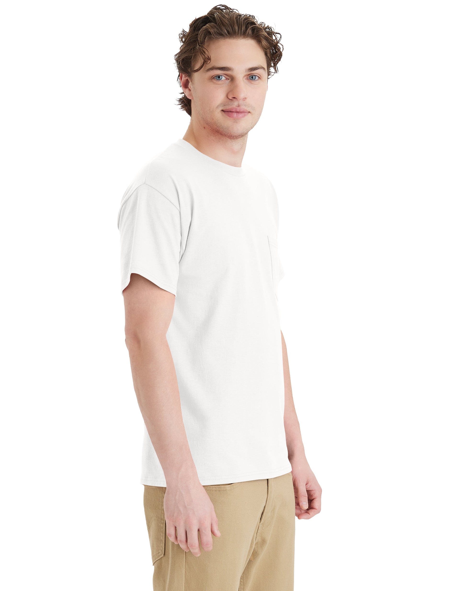 Our classic Essential-T you know and love now comes with a pocket detail. This Essential-T Short Sleeve Pocket T-Shirt is made with super soft 100% American grown cotton and has a durable design, making it a must-have for all your projects.